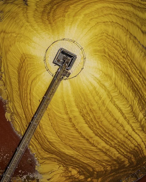 Taken above the BASF processing plant just outside Port Gregory in WA’s north west. The vivid colours combine with the man made machinery to produce a truly psychedelic feel.